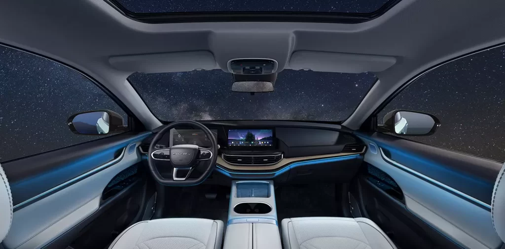 El interior, aparte de algunas superficies en plástico duro, es de muy buenos acabados y cuenta con un elemento que debería ser obligatorio en todos los vehículos: un techo de vidrio enorme que alegra la cabina.