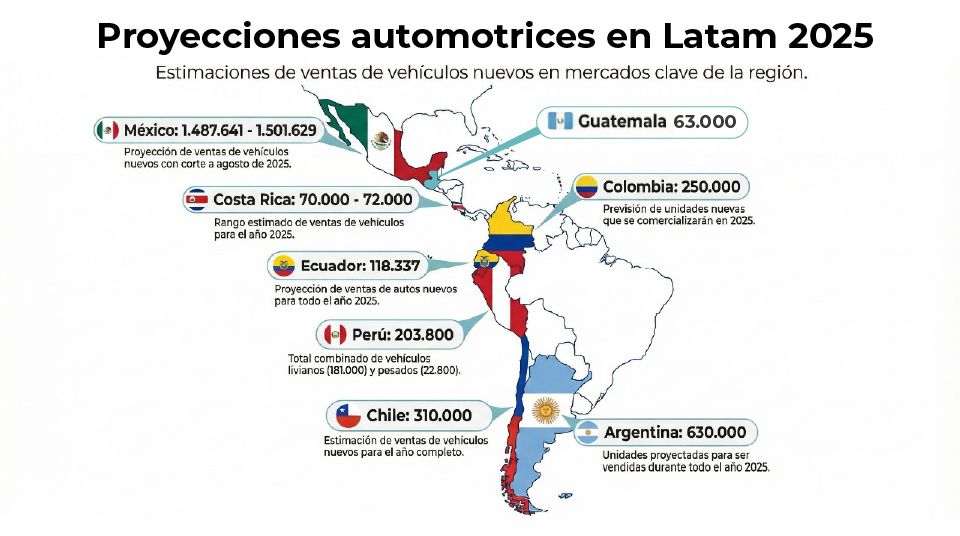 Al país cafetero lo anteceden Brasil (no reportó), México, (alrededor de 1,5 millones de unidades en 2025), Argentina (est. 630 mil) y Chile (310 mil), pero la suceden Perú, Ecuador, Costa Rica y Guatemala.
