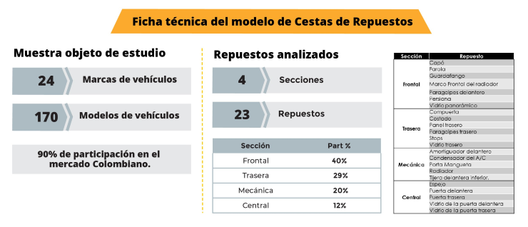 Cabe anotar que esta cesta básica es una herramienta desarrollada por Cesvi Colombia que permite analizar y monitorear periódicamente la evolución de los costos de los repuestos más demandados en caso de colisión.