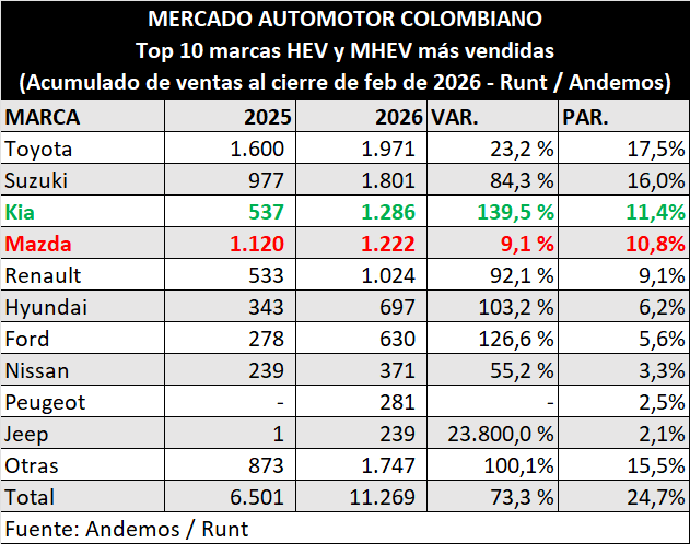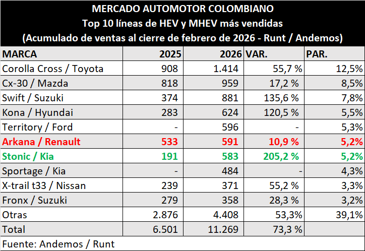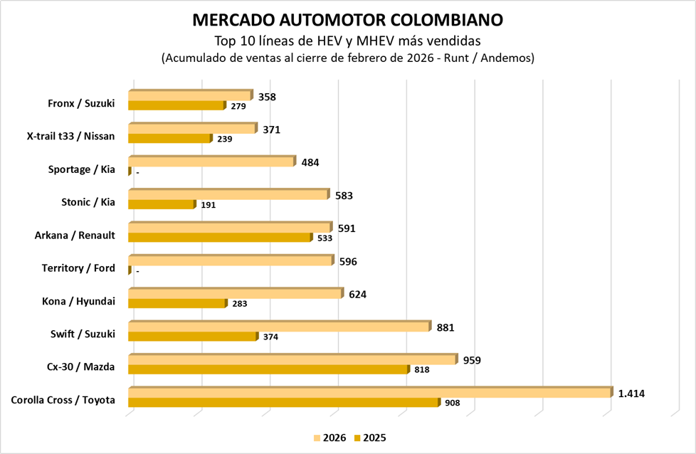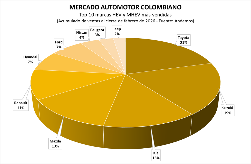 Reportamos el cierre de ventas de los vehículos híbridos no conectables al cierre del mes de febrero, según las cifras de Andemos.
