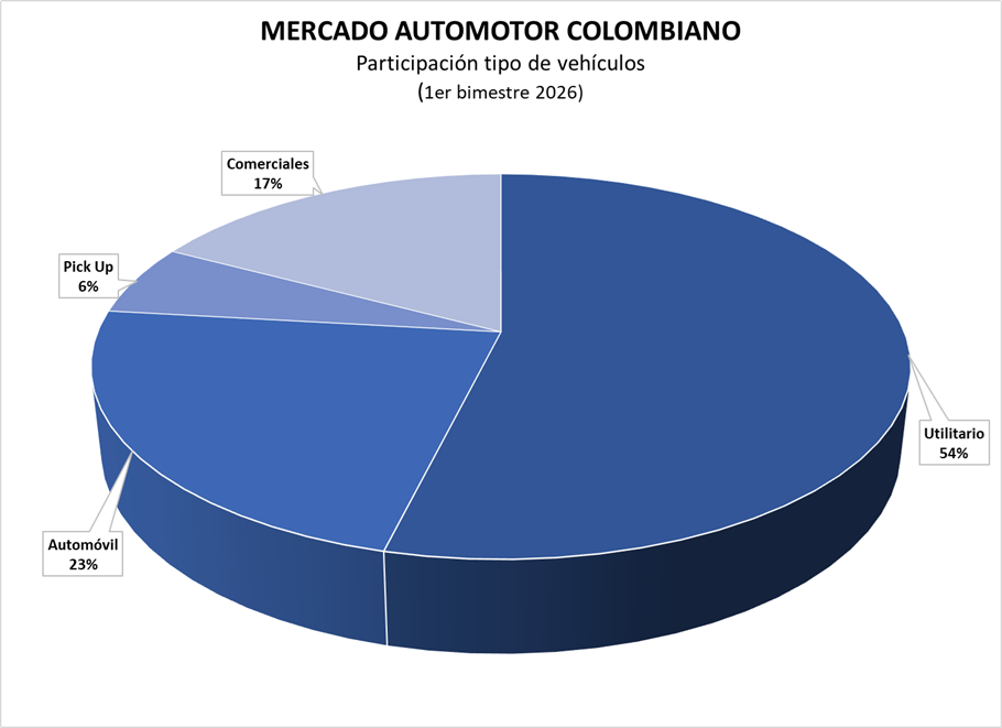 ¿Usted sabía que en Colombia más de la mitad del mercado se compone de camionetas y que menos de 1/4 parte, de automóviles?