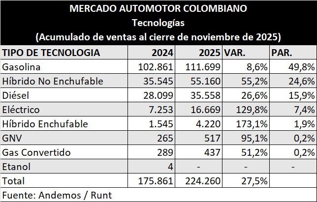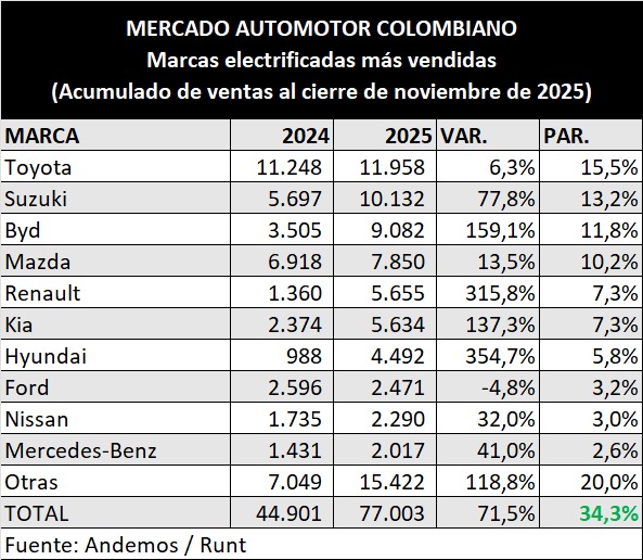Ahora bien, en lo corrido del año se han logrado matricular 76.049 vehículos electrificados, lo cual significa una variación del 71,5% respecto de las ventas del año y una proporción del 34 por ciento del respecto del mercado general.