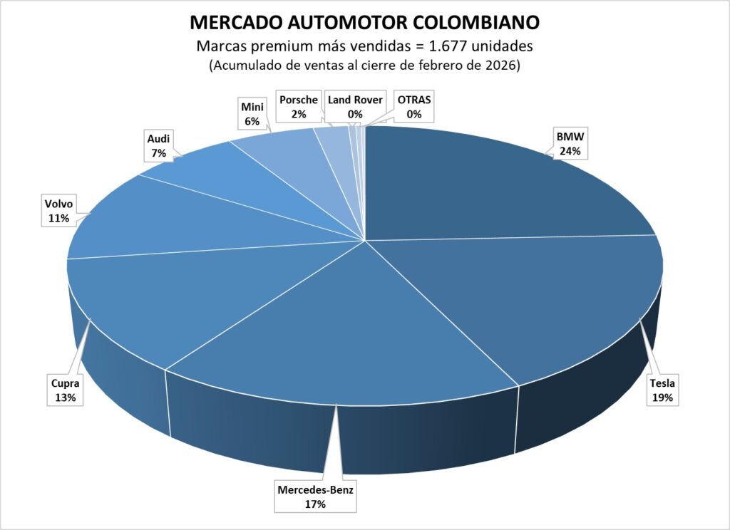 Pero bueno, dado que en Colombia la ubican dentro de los premium, significa que por apenas 6 unidades toma el primer lugar de este segmento al pisarle los talones a BMW, que logró 302.
