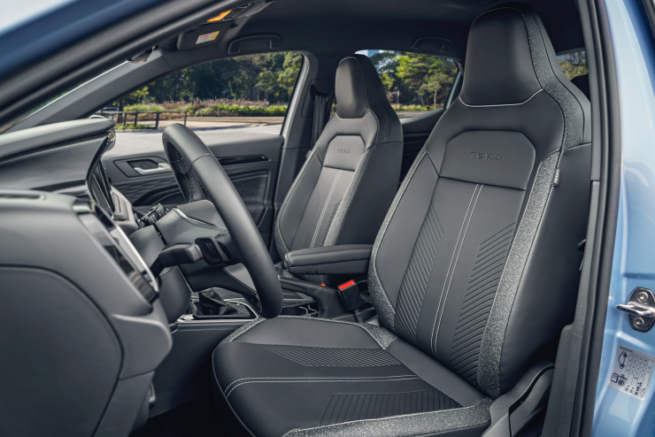 La seguridad es uno de los puntos fuertes del Tera porque incluye seis airbags (dos frontales, dos laterales en asientos delanteros y dos de cortina), frenado autónomo de emergencia (AEB) con detección de peatones, control electrónico de estabilidad (ESC) y tracción (ASR), bloqueo electrónico de diferencial (EDS), detector de fatiga del conductor y monitor de presión de neumáticos.